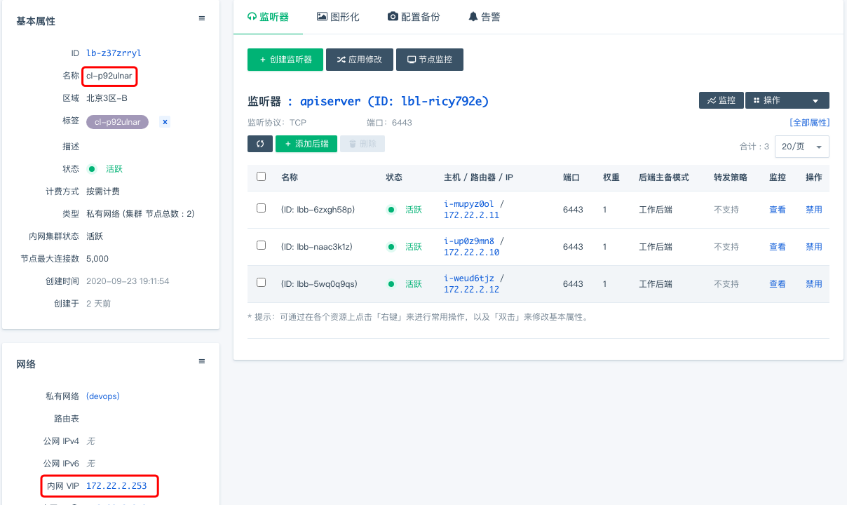 k8s 集群使用 etcd 作为后端存储,建议使用青云提供的 etcd 服务 单独部署和管理,以获得更好的可用性和容错性。