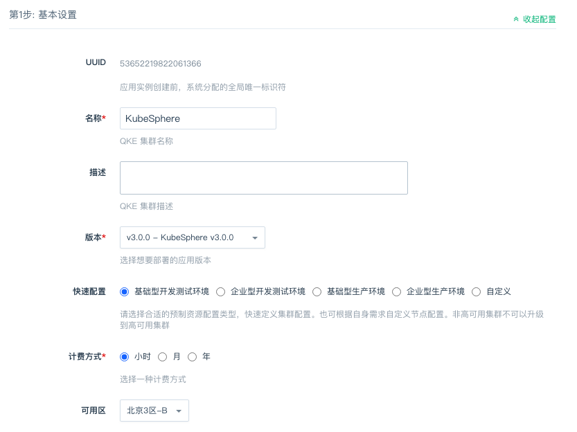 从 QKE v2.0.0 版本起支持创建单节点集群(只创建一个主节点),方便用户快速测试使用。用户可以随时增加工作节点对集群进行扩容(无法增加主节点)。