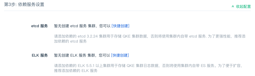 注意:内置 etcd 会占用 QKE 主节点的资源并无法增删节点,生产环境建议独立部署 etcd 服务。