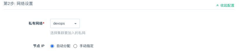 选择集群主机所在的私网,私网需要在创建集群前准备好。