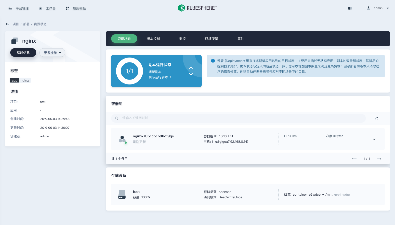 - 集成 QingCloud CSI v0.2.1,Pod 可直接挂载云平台块存储