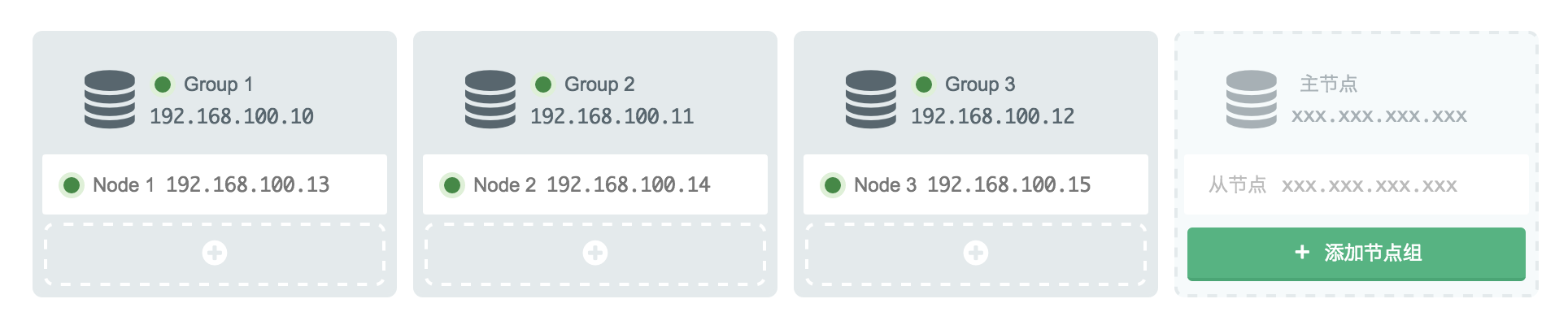 Redis 集群服务每个主节点写的能力与容量都有上限,当写的能力不满足业务需求或达到容量上限时,您可以通过增加节点组即缓存分片来提升写性能以及容量。 每增加一个节点组时将创建一个主节点和其它主节点同样的从节点数。青云QingCloud Redis 集群服务会自动平衡各分片之间的 slots,即会发生 数据迁移,因此增加节点组的时间会有点长。如果事先知道需要增加的分片数建议一次性完成,这样比一次只加一个分片效率更高。 如图所示,我们在原有集群基础上新增一个节点组,并在创建时为新节点指定 IP。
